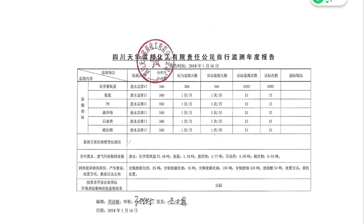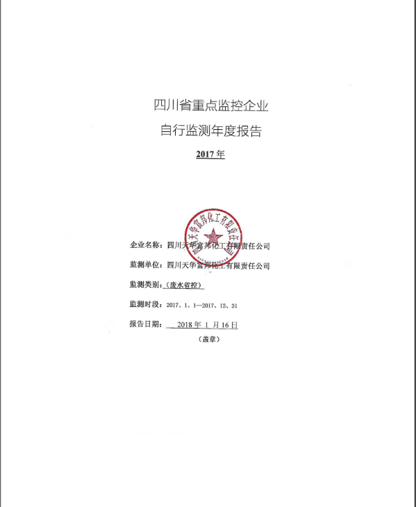 四川天華富邦化工有限責(zé)任公司2017年度自行監(jiān)測報告