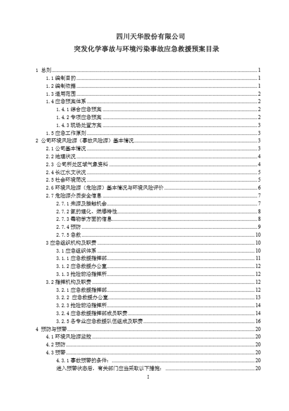 四川天華股份有限公司突發(fā)環(huán)境事件應(yīng)急預(yù)案