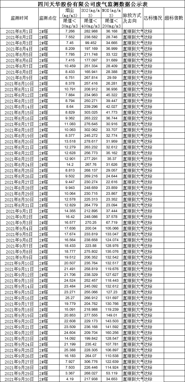 四川天華股份有限公司8月、9月廢水監測數據公示