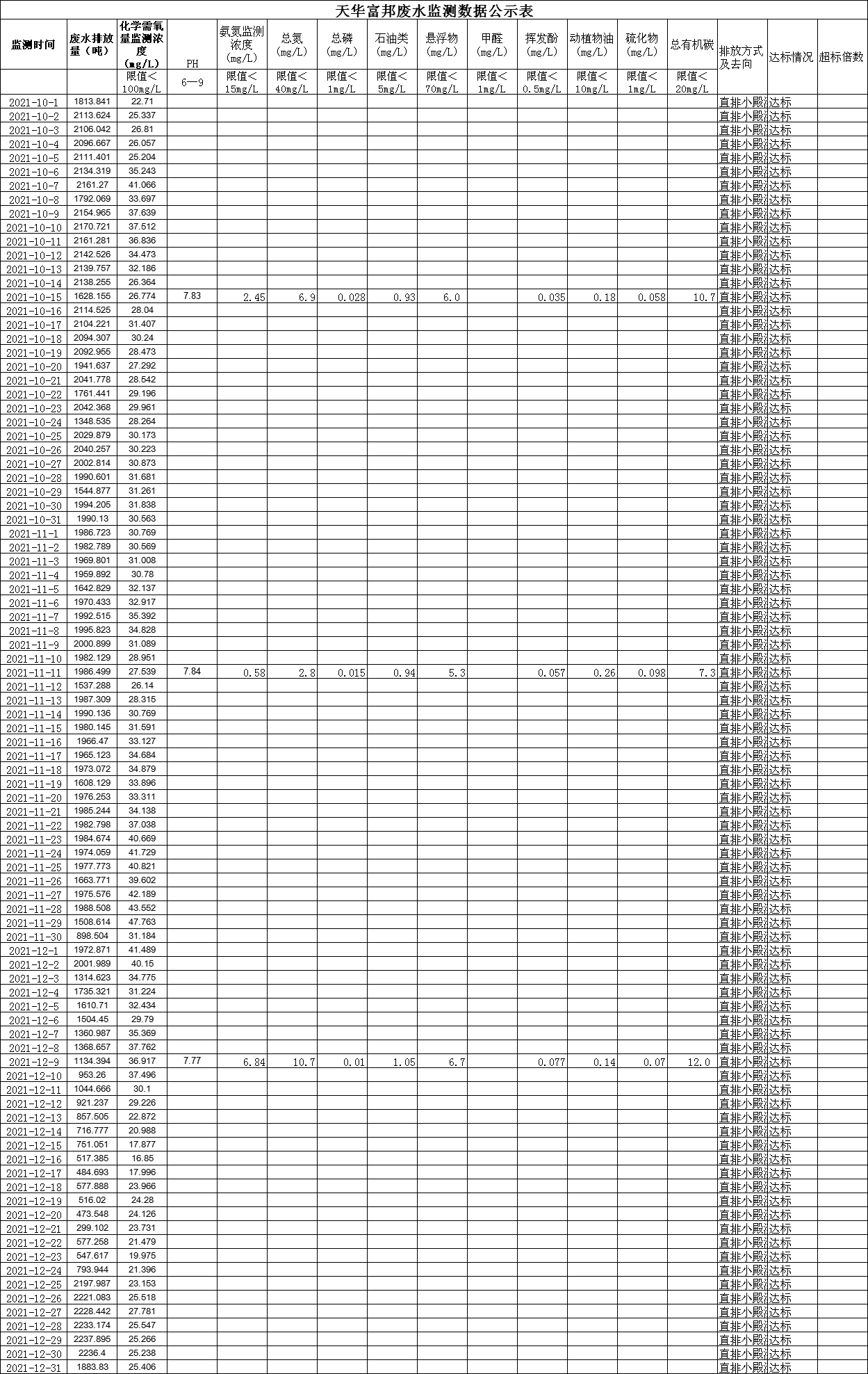 四川天華富邦有限責任公司10月11月12月廢水監測公示